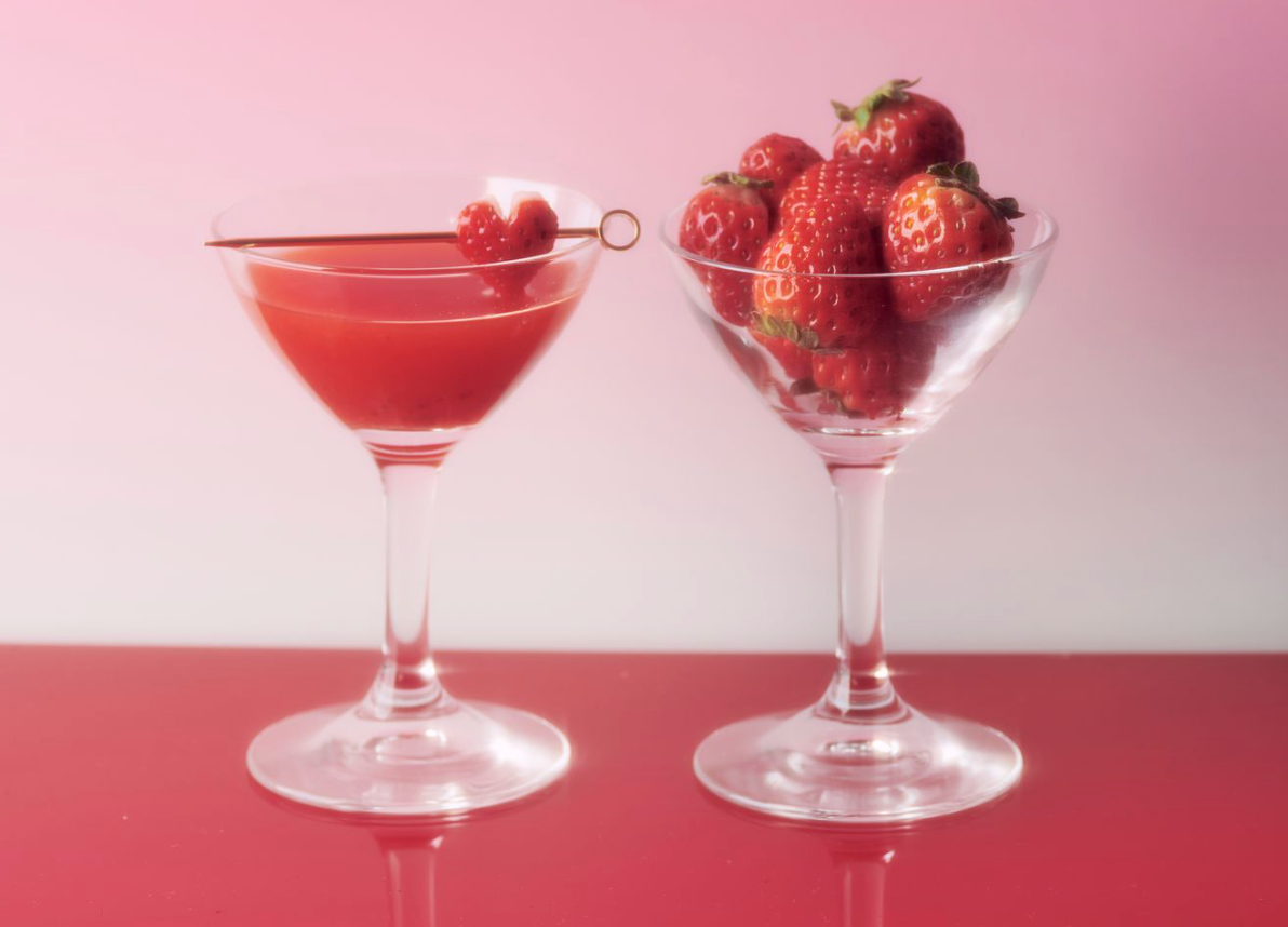 いちごのカクテル単品。小さめのグラスに注ぎ、お楽しみください。