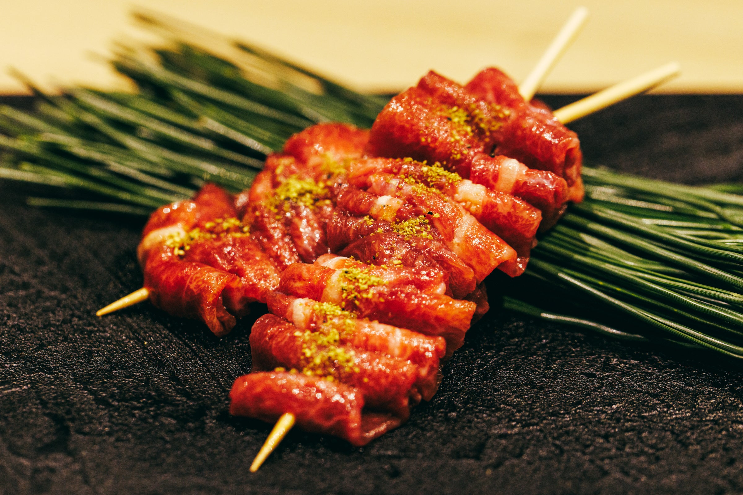 牛ほほ串の山椒焼き(2本) 1,300円 【うしごろ貫】
