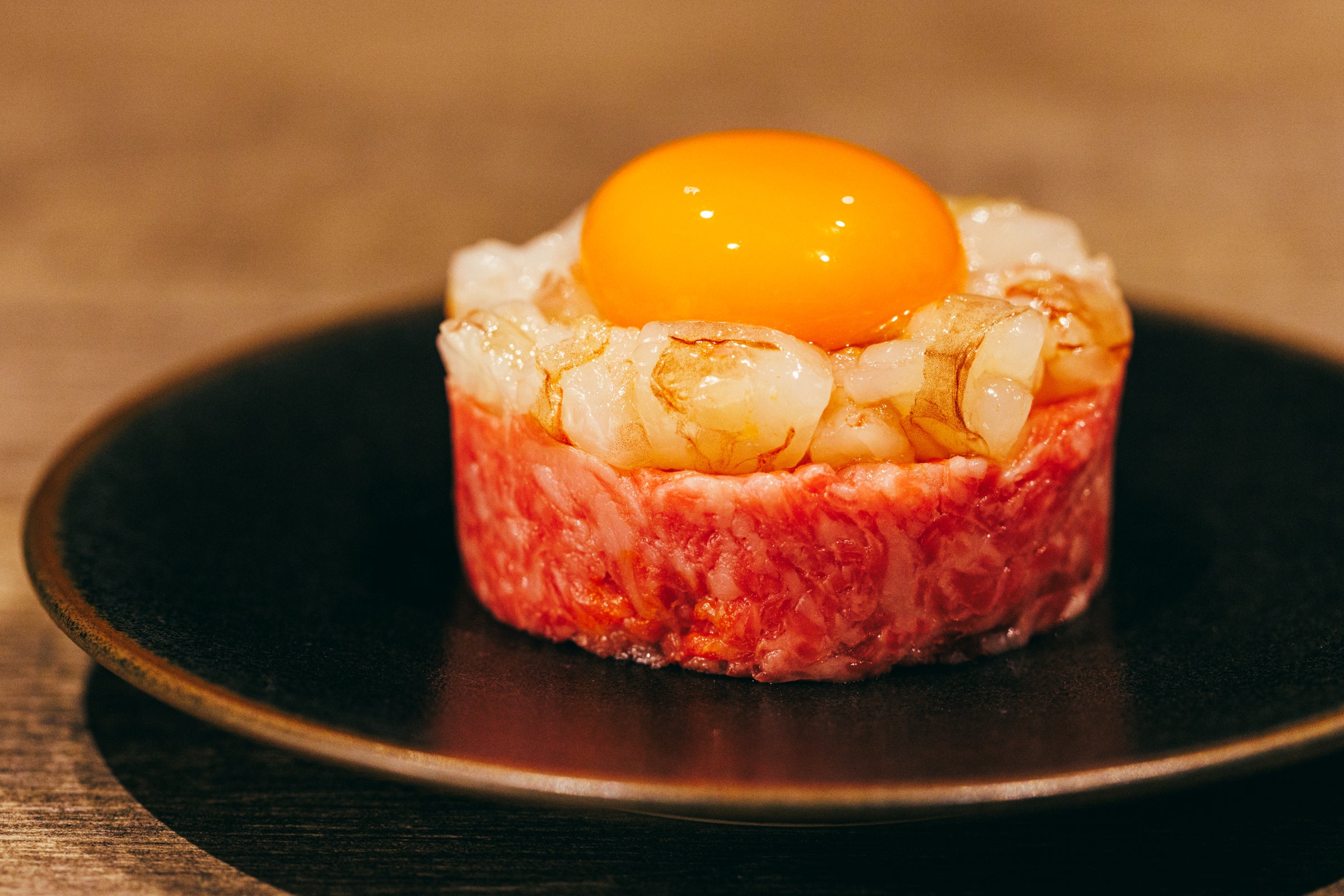 北海ボタン海老の和牛ユッケ 2,400円 【焼肉うしごろ】