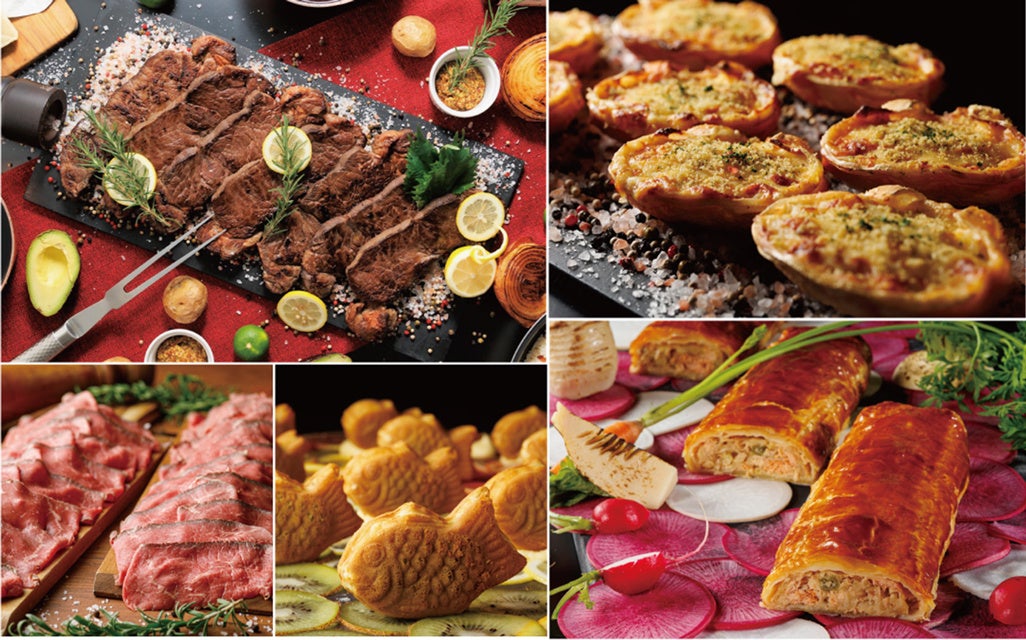 新春を彩るメニューには、“ポークソテーと栗きんとん”や“黒豆とベーコンのミニキッシュ”“伊達巻きのブルスケッタ”など、洋風にアレンジしたおせち料理をはじめ、柔らかな食感に雲丹の風味が存分に味わえる“雲丹のフラン”や“冷製ローストビーフ”、蟹の甲羅を器に蟹のほぐし身をたっぷり入れた“グラタン”やパイを開けた瞬間に白身魚と香味野菜の香りが漂う“白身魚のパイ包み焼き”、幅広い世代に人気の“牛ロースステーキ”やお正月らしく、めでたいにちなんでアレンジして楽しむ“鯛焼きパフェ”など30種類以上を食べ放題でご用意いたします。さらにスペシャルディッシュとして、蟹やイクラ、ブリなど海鮮5種がのった“ちらし寿司”をお1人さま一皿限定でご提供いたします。また振る舞い酒として、大阪産デラウェアを使ったスパークリングワインも合わせてお楽しみいただき、お祝い気分をより一層盛り上げます。