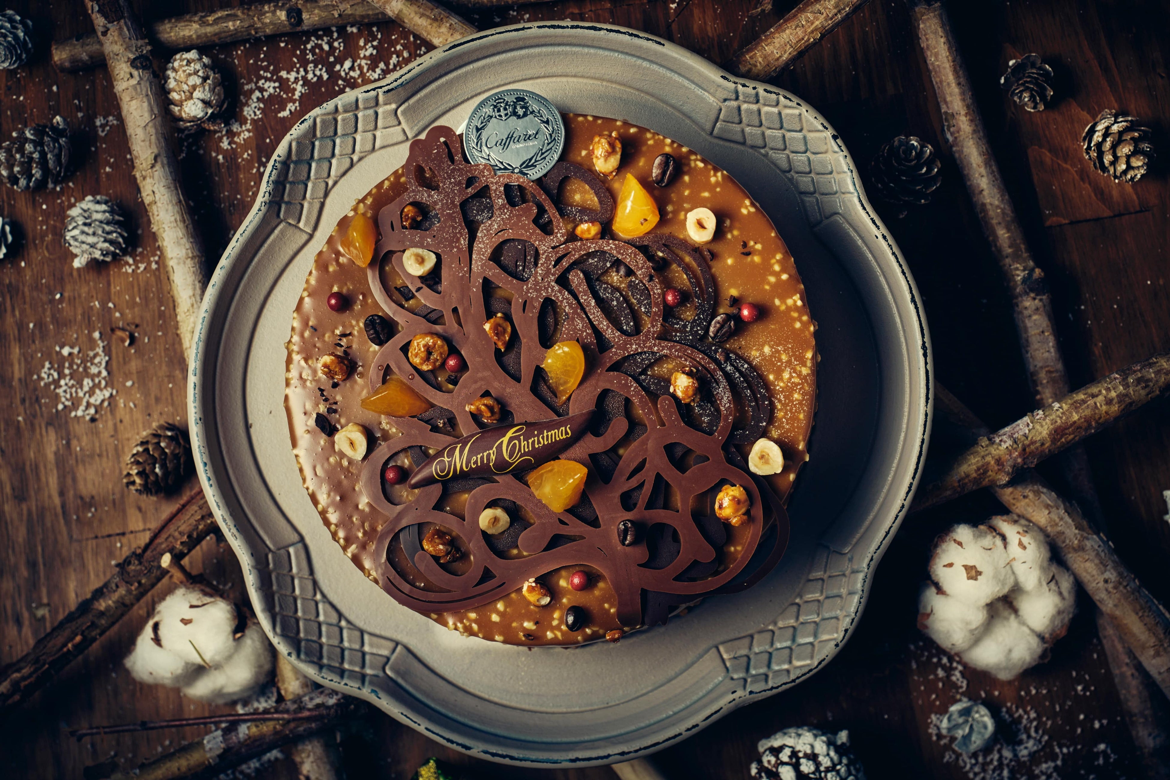 詳細:なめらかなキャラメルアプリコットクリームと風味豊かなエスプレッソクリームをキャラメルジャンドゥーヤムースと合わせました。商品名の「アルベロ」はイタリア語で「木」を意味し、その名のとおり、異なる素材の層は、まるで木の年輪のように深みのある味わいをお楽しみいただけます。またトップにはツリーの形をした2種類のチョコレート(ジャンドゥーヤ、ダークチョコレート)とアプリコット、砕いたヘーゼルナッツがあしらわれており、温かな森の木々に囲まれて過ごすクリスマスをイメージしています。