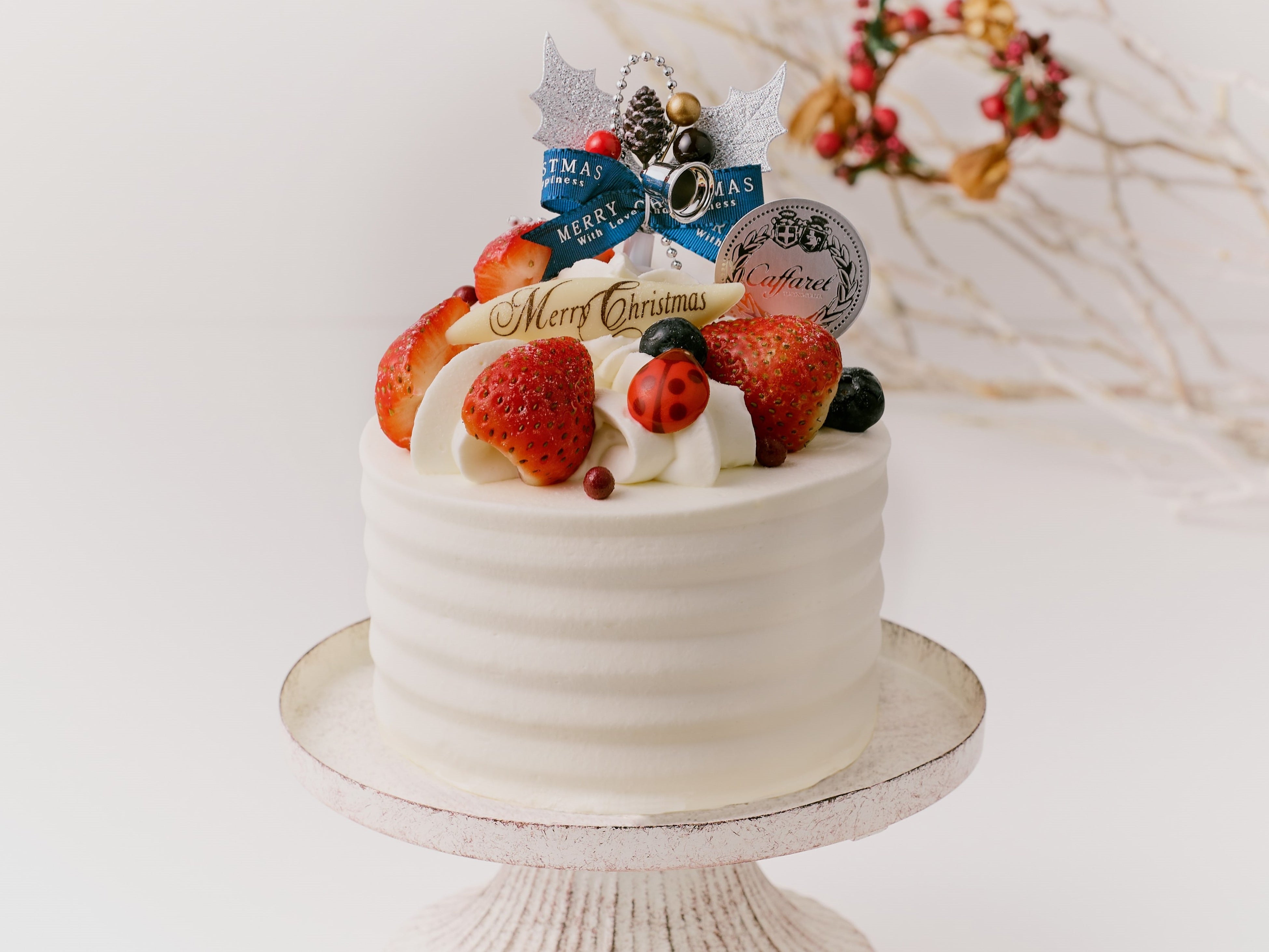 商品内容:ふんわりとしたスポンジ生地に苺を包み、こだわりのクリームをたっぷり使用した正統派のクリスマスケーキ。トップにあしらった、リースのようなデコレーションがケーキを華やかに彩っています。幅広い世代の方にお楽しみいただける優しい味わいです。