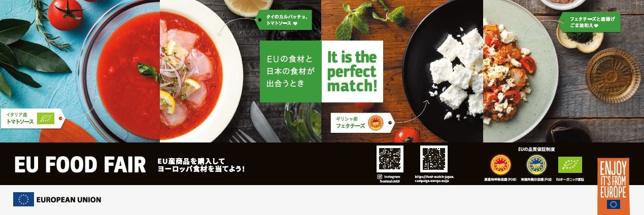 EUと日本の食材の“パーフェクト・マッチ!”プロモーションを展開する欧州連合(EU)は、本年11月22日から11月27 日まで、「ザ・ガーデン自由が丘」16店舗とコラボレーションのもと、対象のEU商品1,000円(税込み)以上購入でご参加いただける抽選キャンペーン「EU FOOD FAIR」を店頭で実施致します。