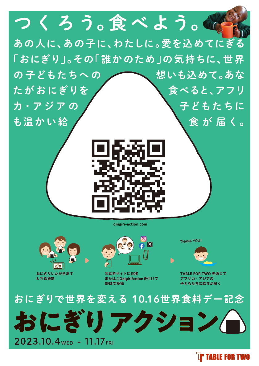 「おにぎりアクション」とは、「食」を通じて世界の食料・健康問題の解決に取り組む⽇本発の社会貢献運動であるTFTが、2015年より毎年10月16日の「世界食料デー※」を記念して実施しているソーシャルアクションです。日本の代表的な食である「おにぎり」をシンボルに、対象商品の購⼊や、「おにぎり」の写真のSNS(または特設サイト)への投稿が寄付につながり、アフリカ・アジアの子どもたちに給食をプレゼントできる取り組みです。今年度の「おにぎりアクション2023」は、2023年10⽉4⽇(水)〜11⽉17⽇(金)に実施されました。当社はTFTが2010年から継続実施している世界食料デーを記念したキャンペーンに、毎年パートナーとして参画。おにぎりアクションについても、2017年からオフィシャルパートナーとして協賛しており、日産セレナは2018年から6年連続でトップスポンサーを務めています。