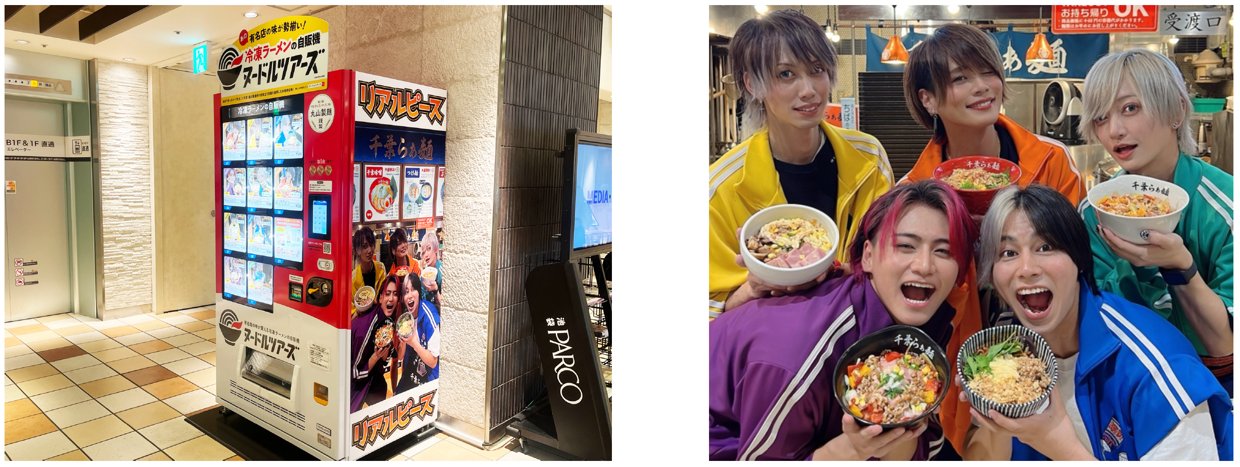 また、冷凍ラーメン自販機「ヌードルツアーズ」のパルコ池袋店での発売にあわせて、期間限定で「ヌードルツアーズ」がリアルピース仕様になります。