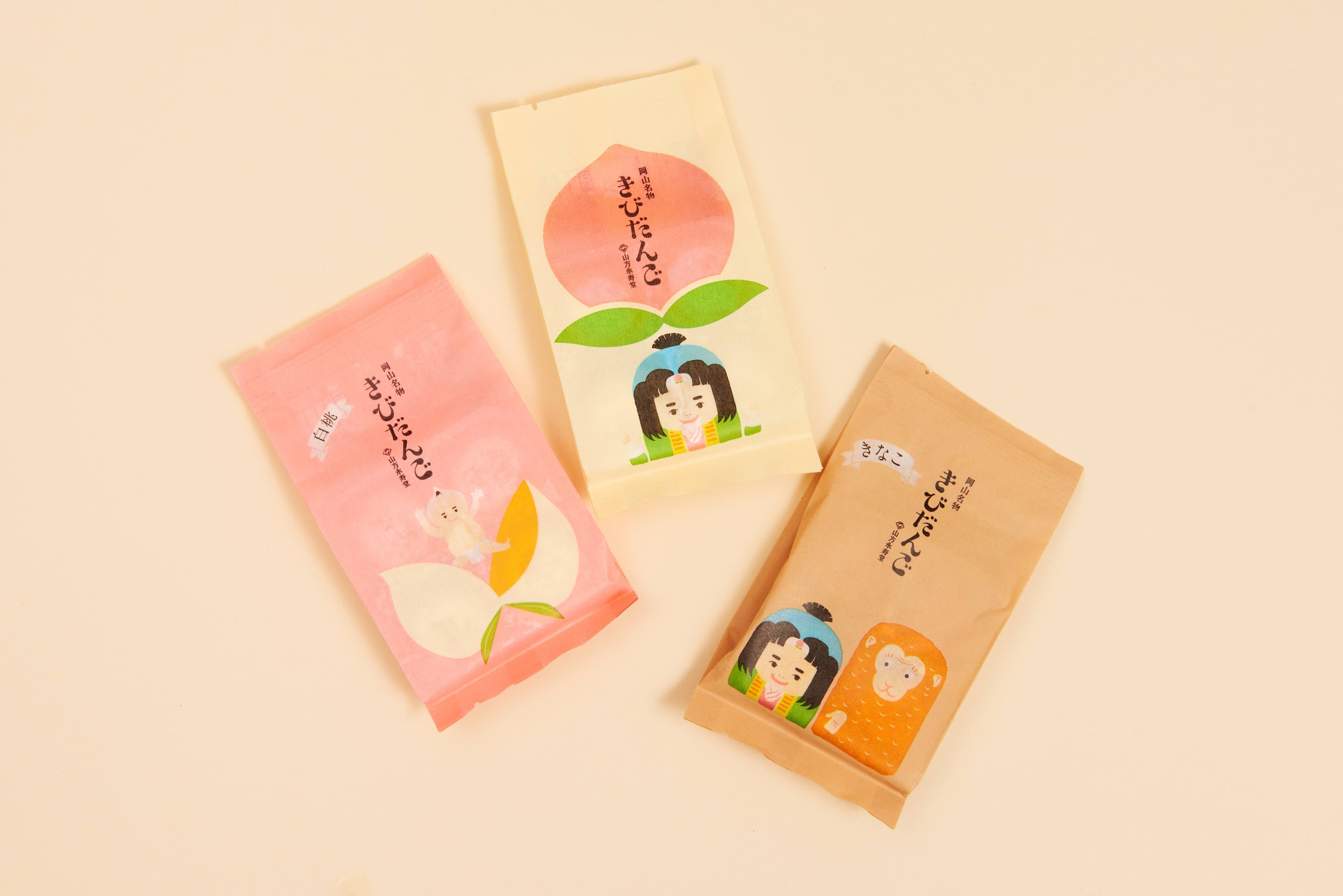熟練の職人によりひとつひとつ手作業で炊き上げたとても柔らかく、滑らかな舌触りのきびだんごと、創業70年を機に依頼した岡山のデザイナー「COCHAE」のデザインによる遊び心満載のパッケージが特徴。