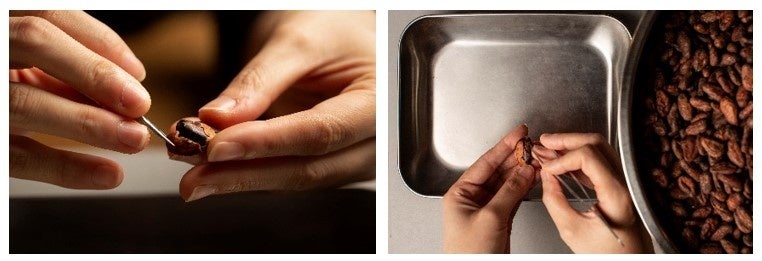 また、素材を無駄なくよりクリーンで雑味の無いチョコレートを作るため、雑味となるカカオ豆の皮と胚芽を全て一粒ずつ丁寧に手作業で取り除いている。カカオの風味を楽しんでもらうために75%をメインとしたタブレットチョコレートがおすすめ。