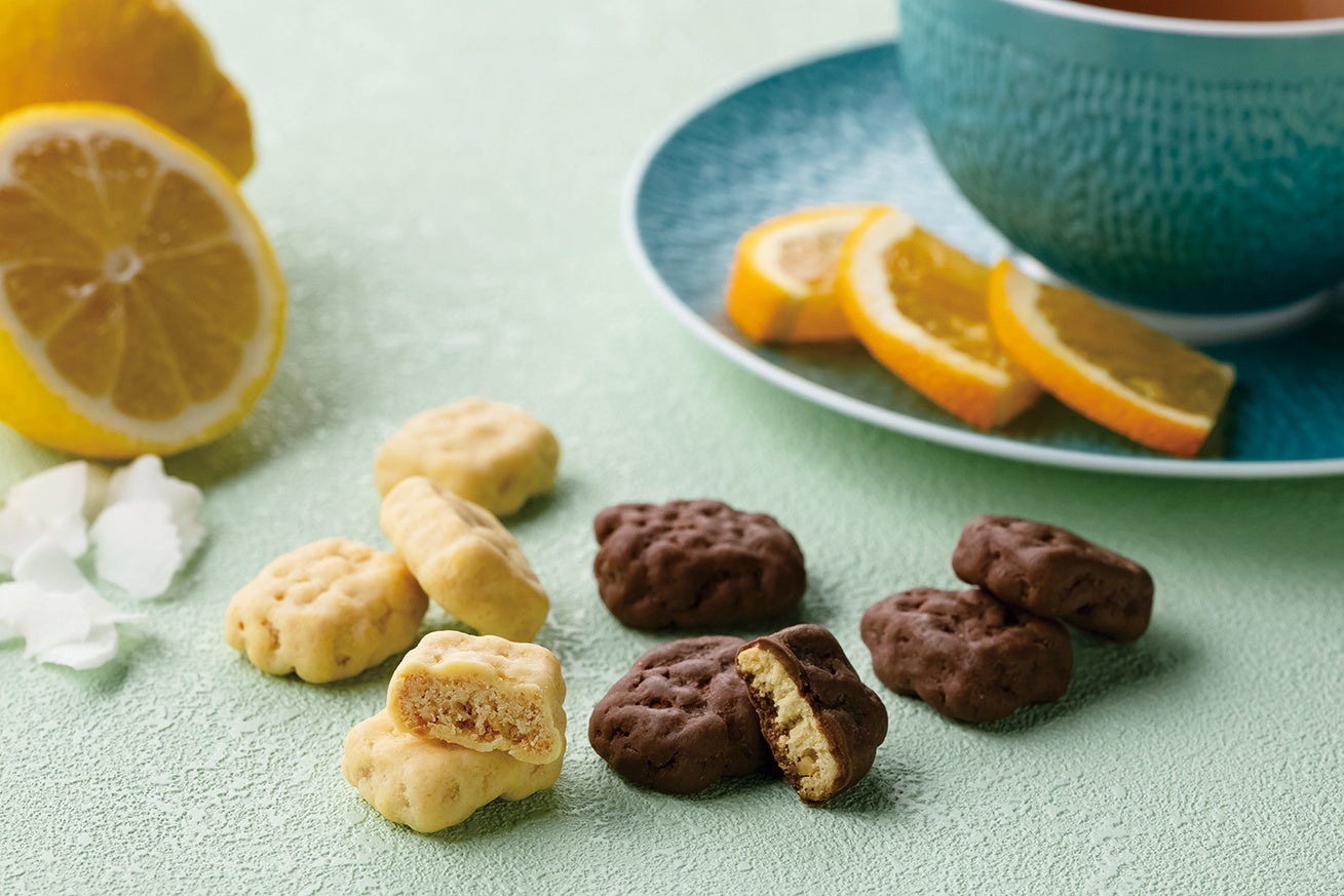 丁寧に素材と向き合いながらさっくりと焼き上げた特製クッキーを、2種のチョコレートで包み込んだ一品。柑橘の美味しさをまろやかに楽しむ、レモン&ココナッツとオレンジ&紅茶フレーバーの詰め合わせです。