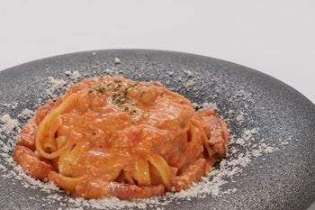 阿智村産トマトのクリームソースに紅ズワイガニを加えた一品