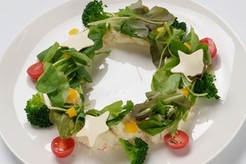 クリスマスリースをイメージしたのボリュームたっぷりサラダ。