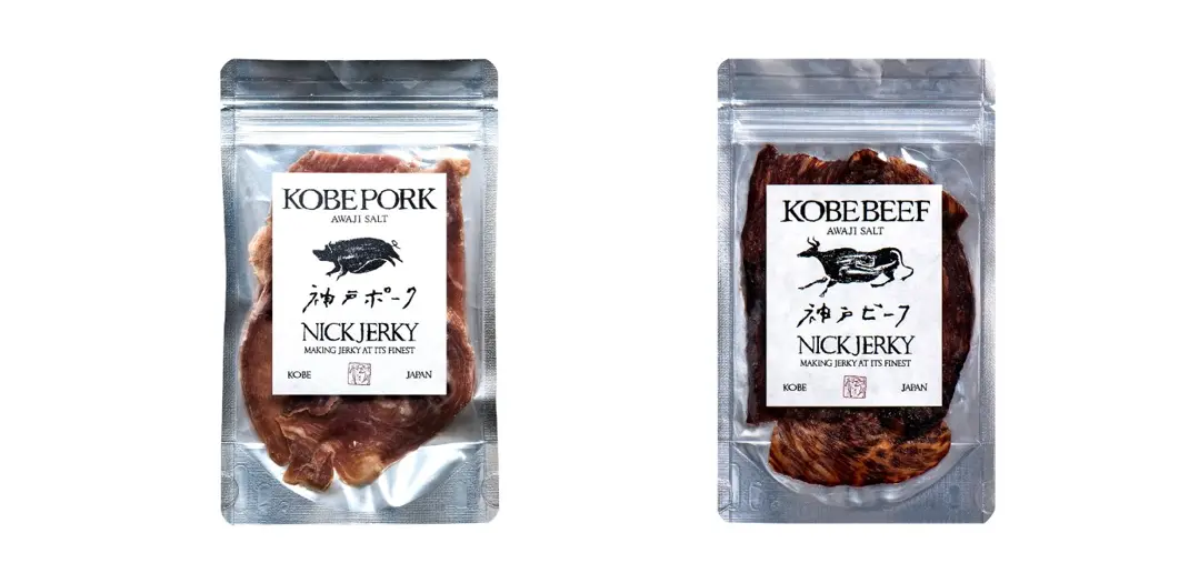 神戸ビーフは兵庫県で生産される優れた但馬牛を素牛として平均32カ月程度かけて理想の肉質に近づけた日本が誇る和牛トップブランド。その良質な神戸ビーフを独自の製法で約1/5まで旨味を凝縮。網の目のように走る霜降り、とろけるようなまろやかさが特徴のビーフジャーキーです。 塩は淡路島の海水を鉄釜に薪をくべて約40時間かけて炊き、杉樽で一晩寝かせた天然塩を使用。(詳細:https://nick.co.jp/)