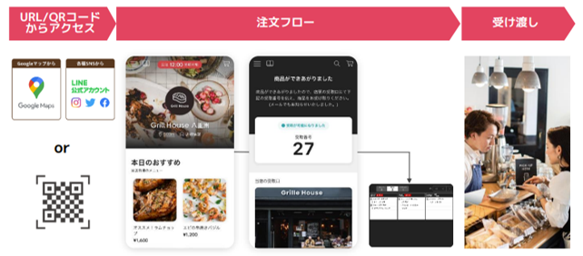 GoogleMapからテイクアウト注文画面へ直接アクセス、テイクアウトの注文が可能になります。
