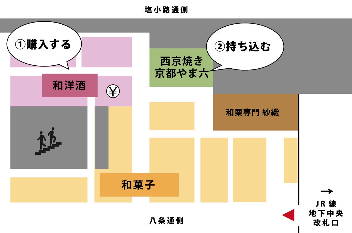 ・持ち込みいただけるのはジェイアール京都伊勢丹地下1階 和洋酒コーナーにてご購入のお酒に限ります。