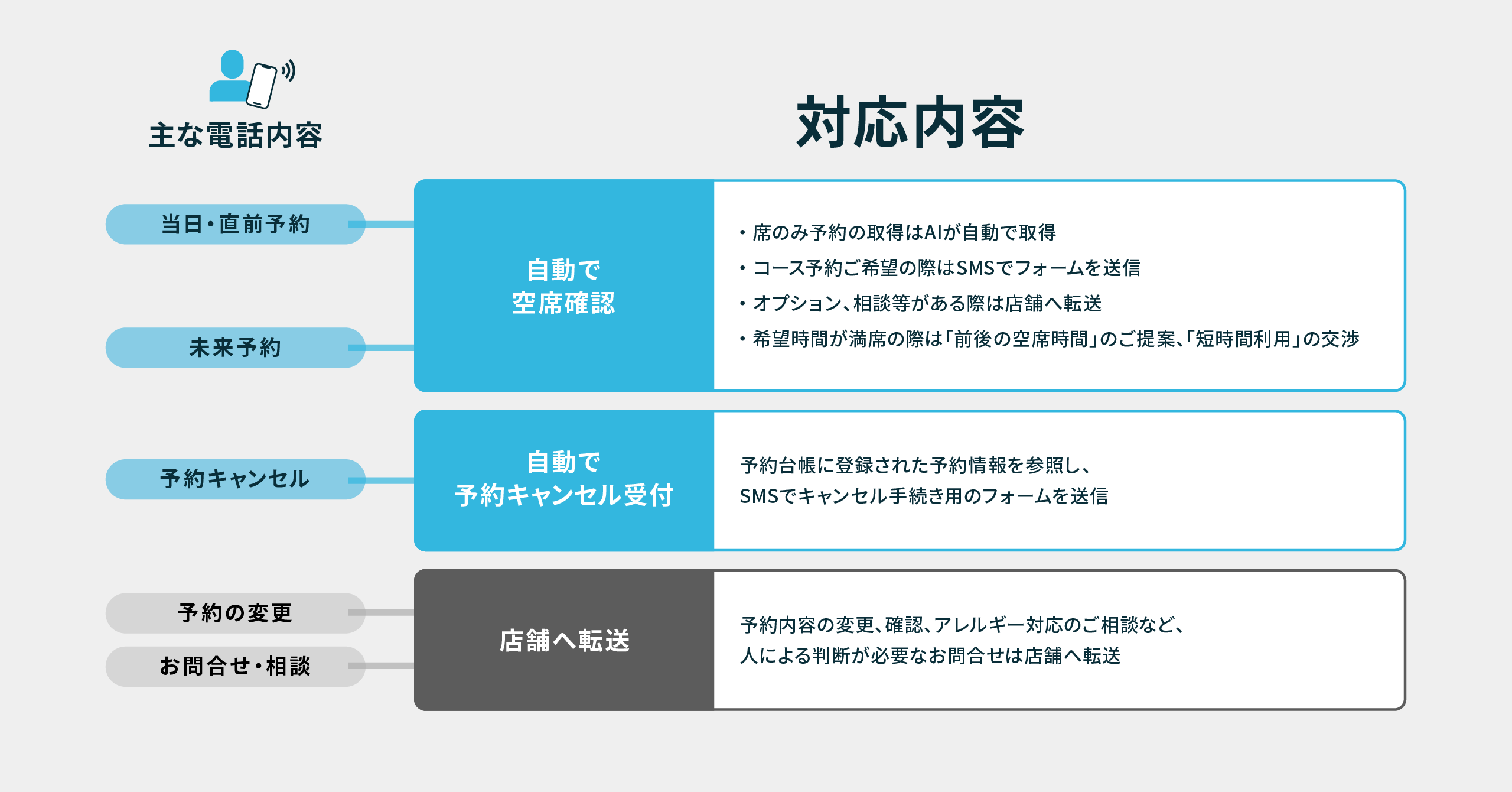 音声認識と応答品質の高さ、有人連携や他のシステムとの連携性の高さ等が評価され「PKSHA Voicebot」が採択され、2023年12月より「GATE AIコール」として稼働、24時間365日予約対応が可能となります。