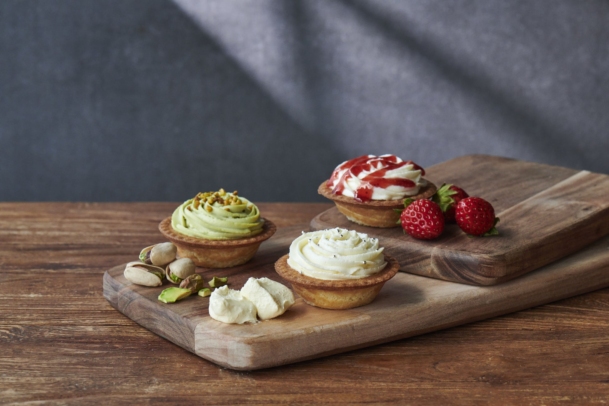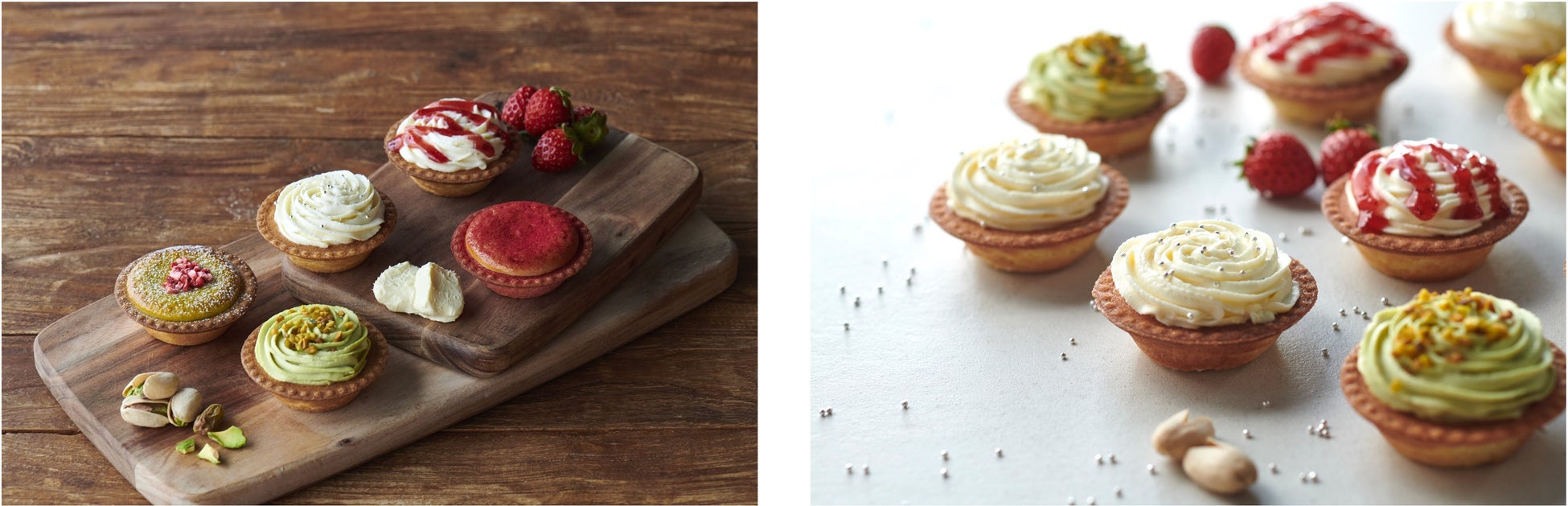 季節限定人気フレーバー「ピスタチオベリー」がさらに美味しくリニューアル。ピスタチオペーストを増量したチーズムースはコクと優しい甘味を楽しめます。ラズベリーピューレを合わせたラズベリージャムをタルトカップに充填し、ピスタチオチーズムースを注ぐことで、味わいはもちろん見た目のコントラストも鮮やかです。ストロベリーのフリーズドライと粉糖で仕上げたトッピングで一層華やかにしました。