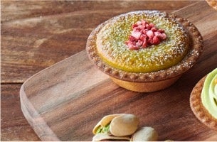 季節限定人気フレーバー「ピスタチオベリー」がさらに美味しくリニューアル。ピスタチオペーストを増量したチーズムースはコクと優しい甘味を楽しめます。ラズベリーピューレを合わせたラズベリージャムをタルトカップに充填し、ピスタチオチーズムースを注ぐことで、味わいはもちろん見た目のコントラストも鮮やかです。ストロベリーのフリーズドライと粉糖で仕上げたトッピングで一層華やかにしました。