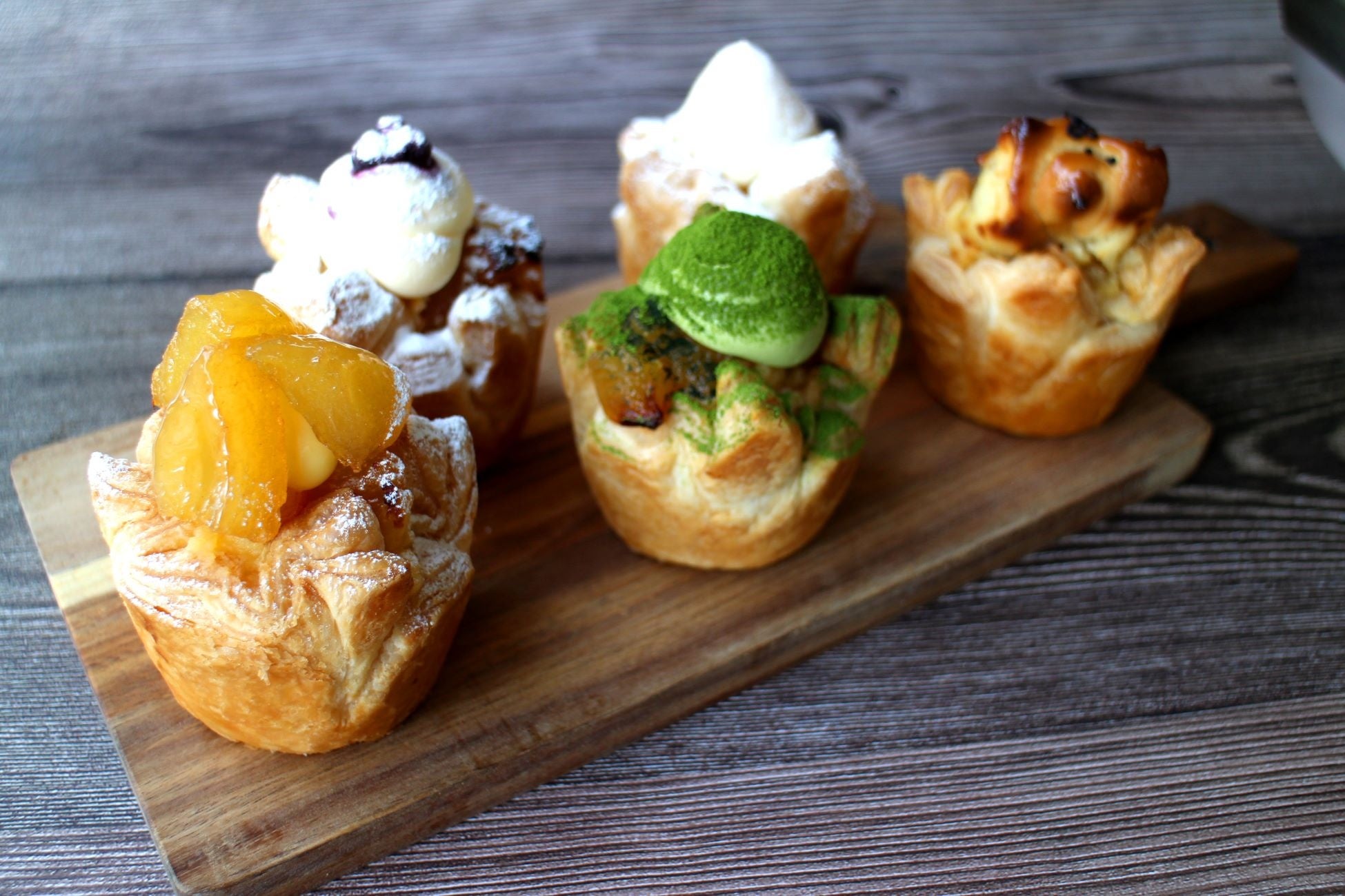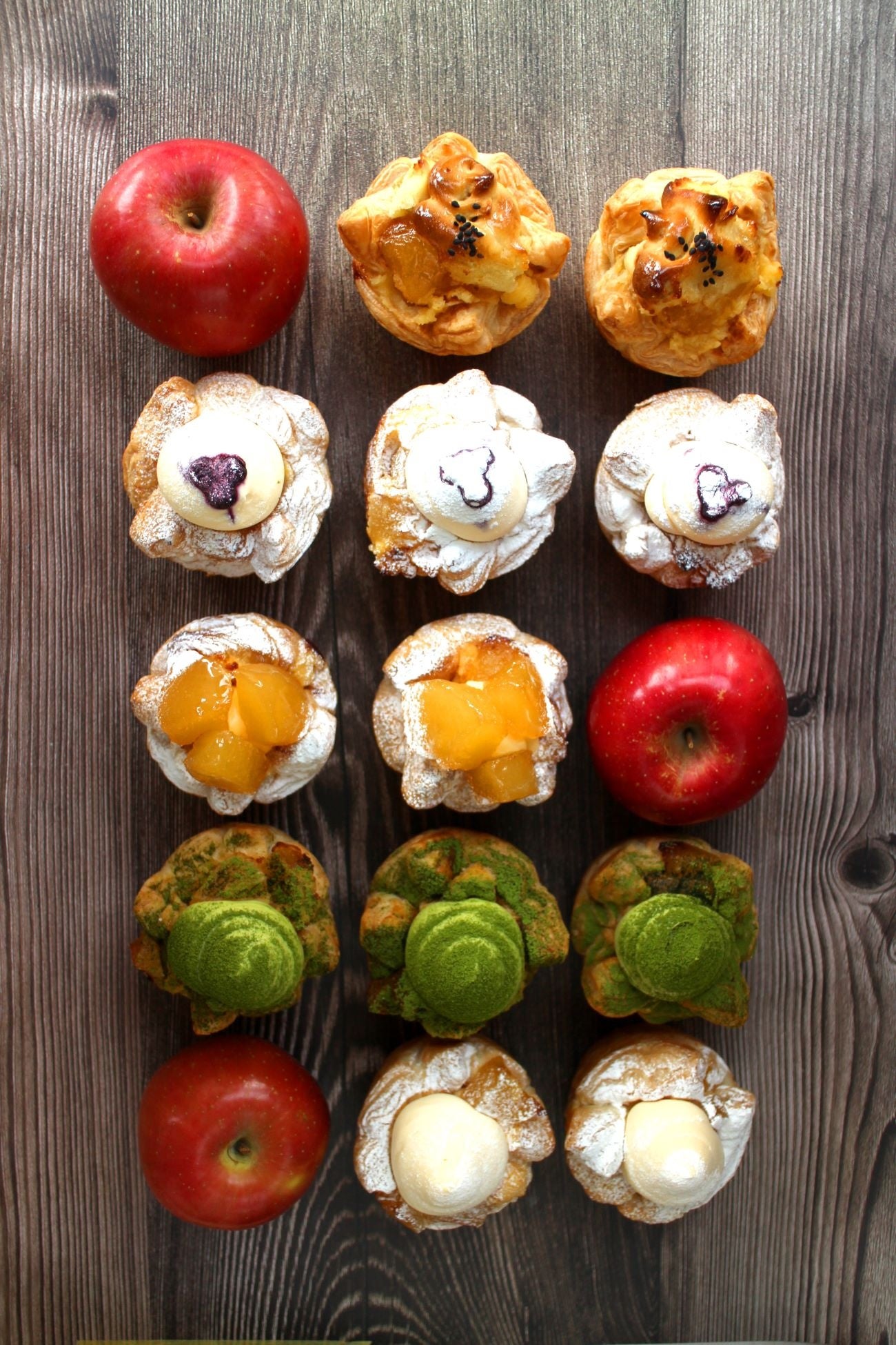 味のバリエーションは計5種類。りんごとシナモンを使った定番の味に加え、カスタードクリーム、抹茶クリーム、マスカルポーネクリーム、スイートポテトをラインナップしました。
