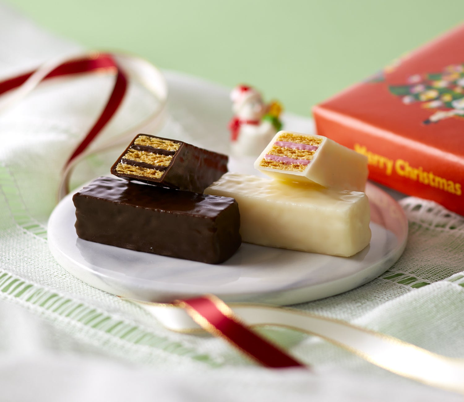 生チョコクッキーサンド、ショーコラ・ストロベリーチーズケーキとパリトロ・ピスタチオを含む、クリスマス限定のオリジナルアソートです。