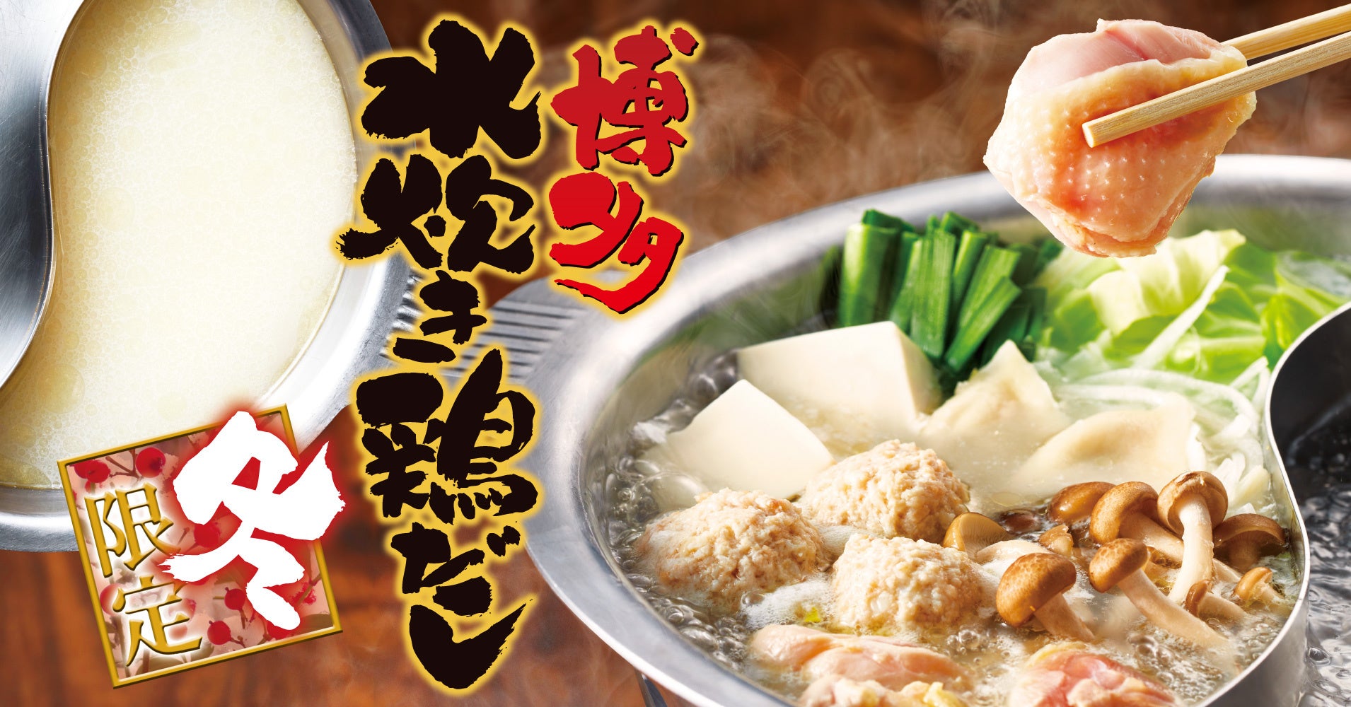 2種類の鶏油と鶏ガラを贅沢に使用し、瀬戸内産の塩で旨味を凝縮、まろやかでコク深い白湯だしに仕上げております。「博多水炊き鶏だし」に合う「水炊き野菜盛合せ」のキャベツは、じっくり煮込むと甘味が増し格別の味わいをお楽しみいただけます。また、もちもちとした食感と柚子の香りが広がる「柚子もちつみれ」と、鶏の旨味が詰まった、ふんわりした「鶏焼売」は、スープとの相性が抜群です。是非一緒にお召し上がりください。