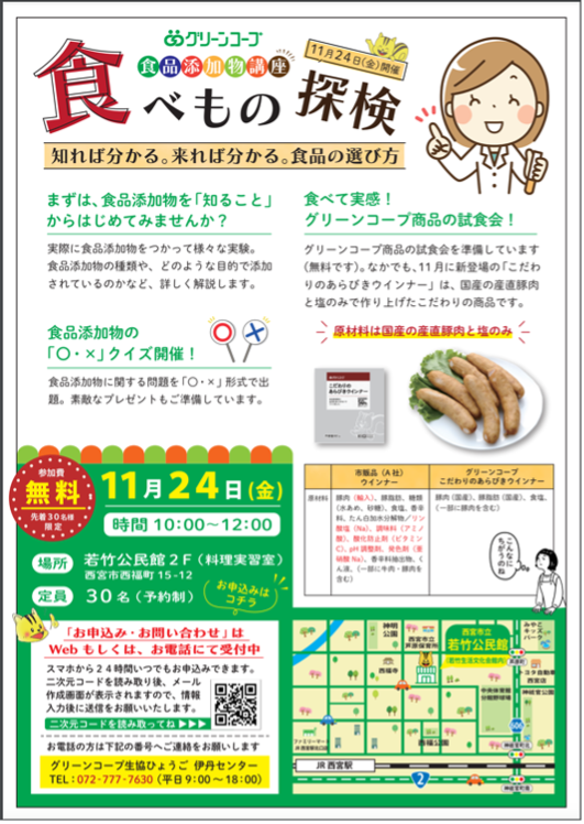 申込方法:グリーンコープ生協ひょうご 伊丹センター(TEL:072‐777‐7630 平日9:00~18:00)までお申し込みください。