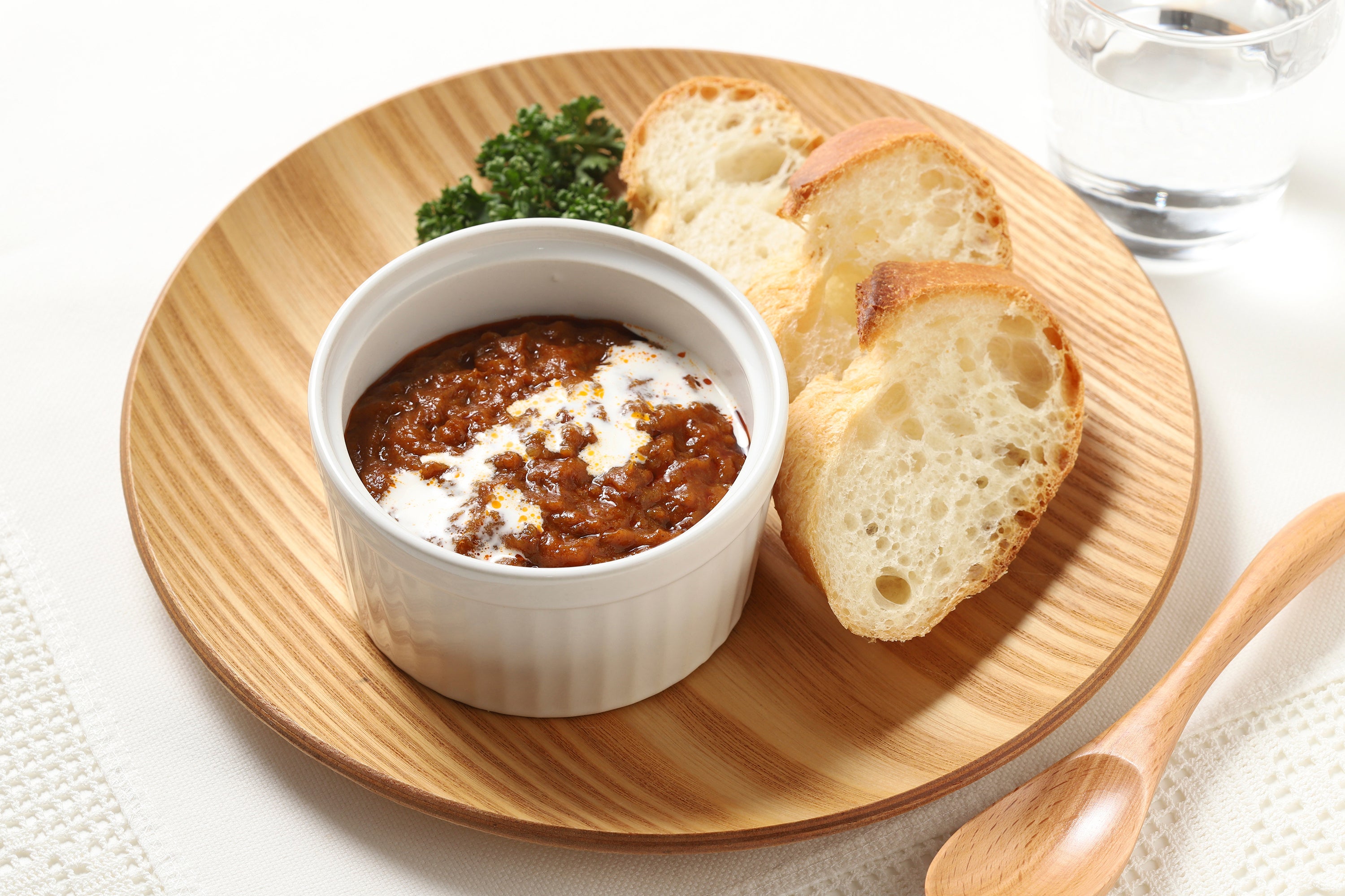 高級食材のイノシシ肉を赤ワインでじっくり煮込んだ、ジビエの本場フランスのエスプリ溢れるカレーです。香り高いスパイスや食材の甘みとイノシシ肉の旨みが調和した、コクと深みのある味わいが楽しめます。