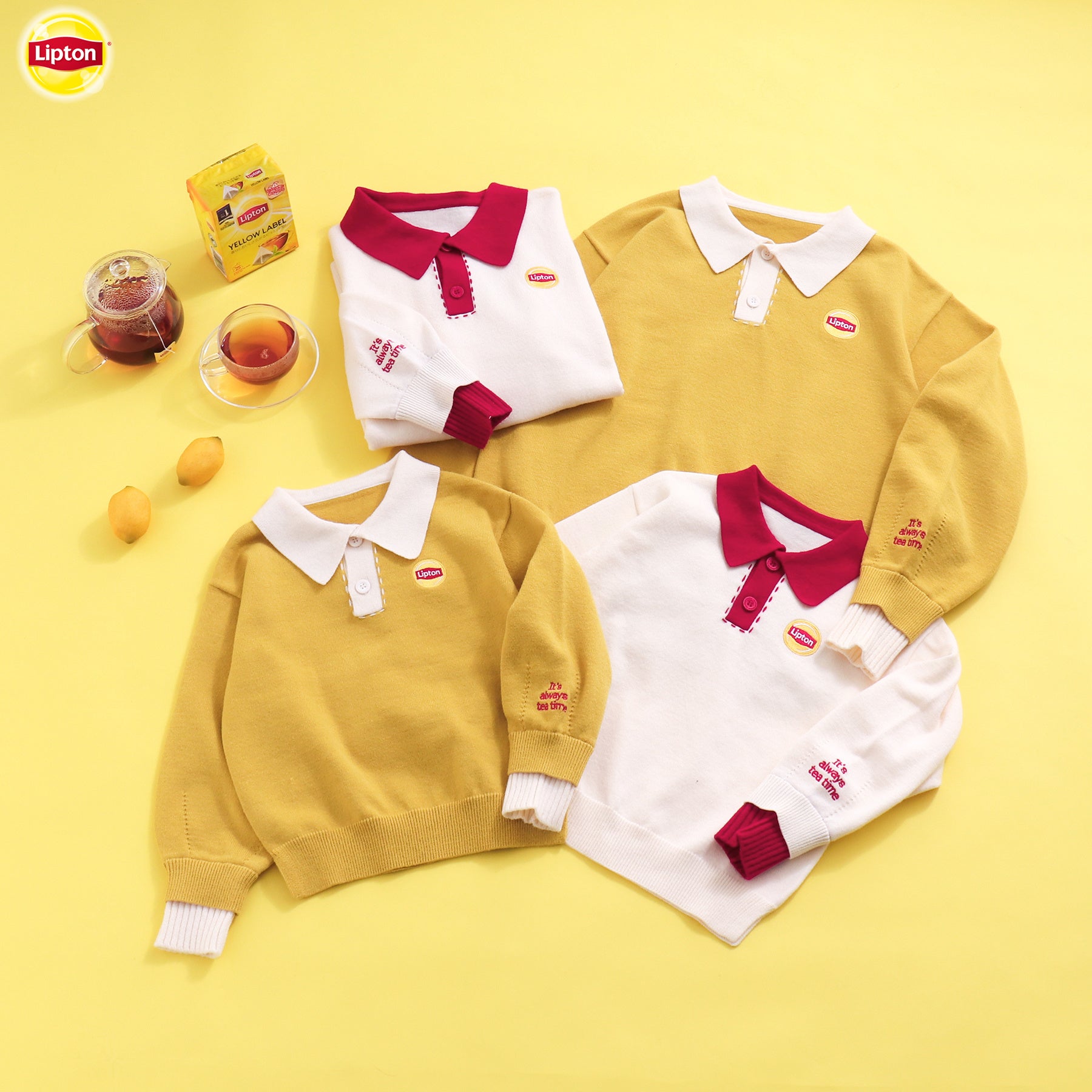 子供服ブランド「après les cours(アプレレクール)」とコラボレーションした「リプトン襟付きニット」。可愛いリプトンロゴのワンポイント付きのかわいいデザインは、肌寒くなる季節にぴったり。親子でお揃いの「リプトン襟付きニット」を着て、子どもと一緒に一息つくかけがえのない時間をお過ごしください。