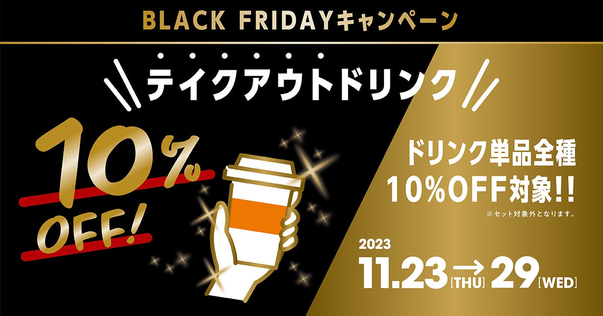 ブラックフライデーとは、アメリカの感謝祭が11月の第4木曜日に行われ、その翌日の金曜日のことを指しており、セールが実施されます。日本でもいろんな場所でこの時期には実施され、馴染みのある言葉となりつつあります。そんな特別なイベントに合わせてサンマルクカフェ全店でも実施し、より多くのお客様に日頃の感謝の気持ちを込めて、お得に様々なドリンクをお楽しみいただきたいと思います。ご家族、ご友人、恋人などと一緒に温かいドリンクをテイクアウトしていただき、より“ほっこり”とした気分で素敵なひとときをお過ごしください。