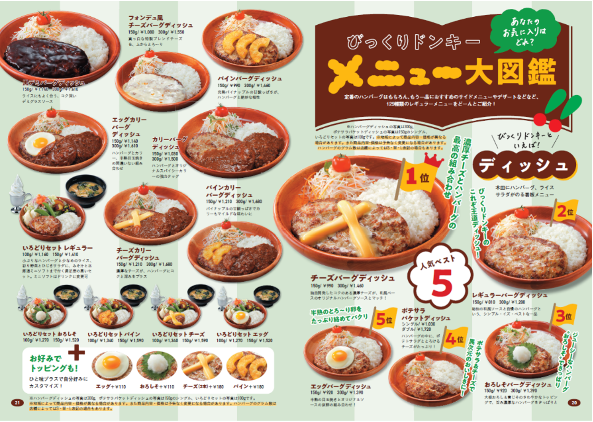 人気メニューランキングや豆知識など、129種類のメニューを紹介しています。