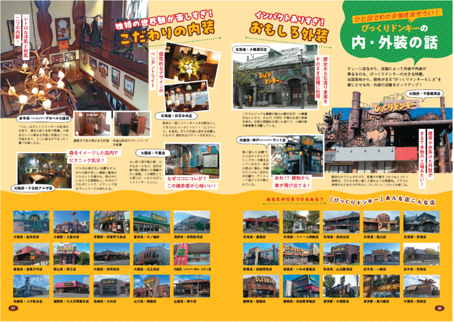全国各地から、特徴的な内・外装の店舗がピックアップされています。
