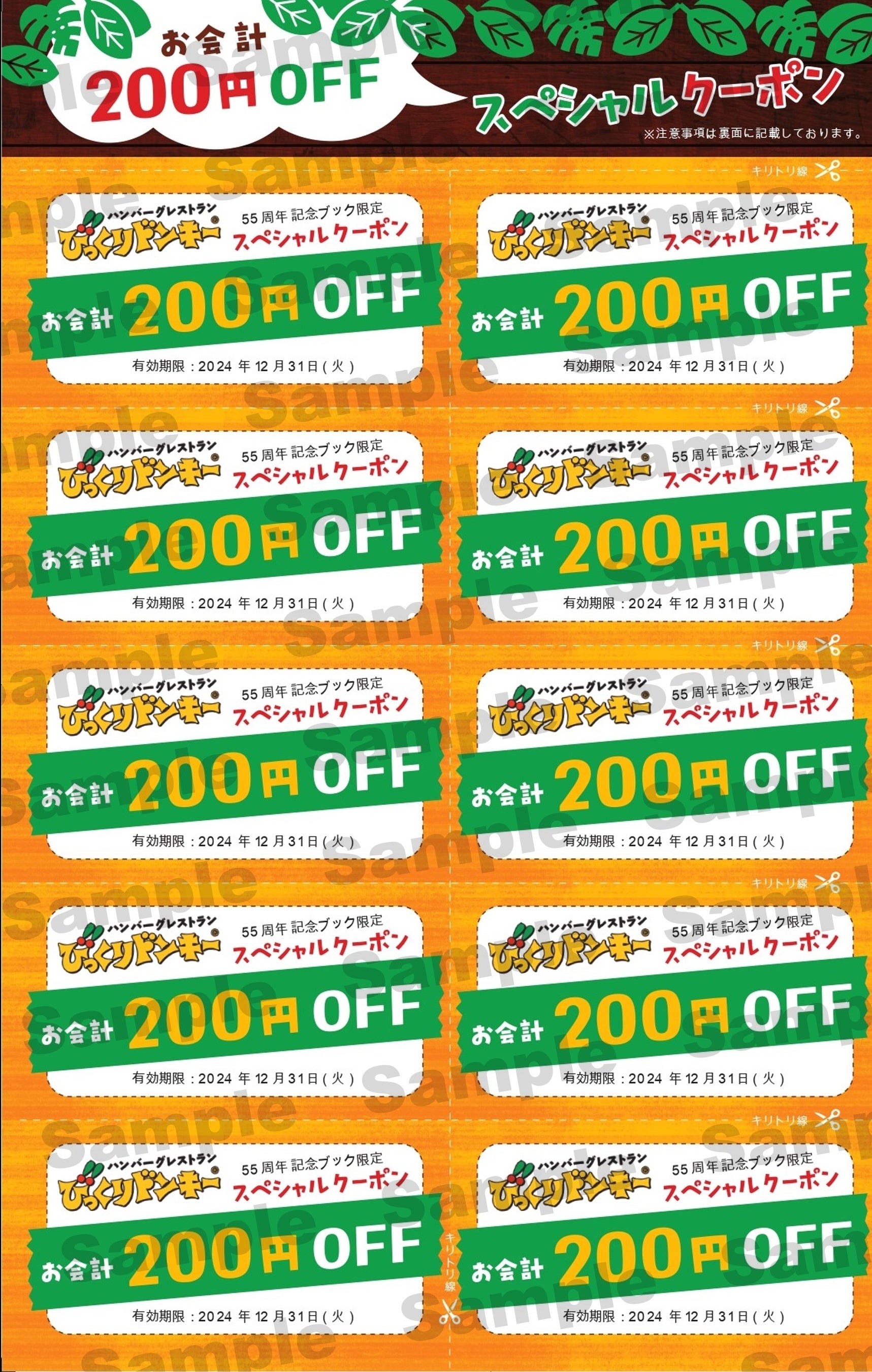全国のびっくりドンキーで使える200円×10枚のお得な割引クーポンです。