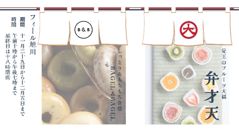 出品ブランドは日本全国に約40店舗を展開する、ほのかな甘さのハーモニーとしっとり&もちもち食感が特徴のベーグル専門店 「BAGEL & BAGEL」 と、フルーツ本来の味を引き立てる白餡と求肥の⻩金比にこだわり、高級羽二重粉を使用した上品な求肥で手包みしたフルーツ大福を提供する 「弁才天」 を出品いたします。お近くにお越しの際はぜひ、お立ち寄りくださいませ。