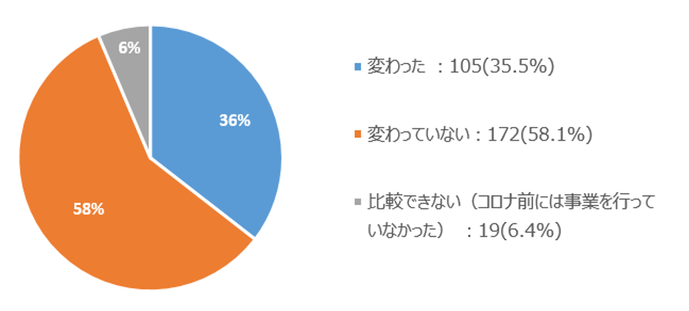 ▼コロナ前後で将来の事業の方向性について考えが変わりましたか?(N=296)