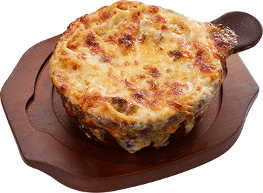 燻製したスカモルツァチーズやオリジナルのボロネーゼソース、トマトソースを使ったパスタに温野菜をあわせ、ミックスチーズをのせてこんがりと焼き上げました。粗挽きにした牛肉をじっくり丁寧に煮込んだコクのあるボロネーゼは、ジョリーパスタ自慢のソースです。お好みでフライドガーリックやブラックペッパーを加え、風味の変化をご堪能ください。