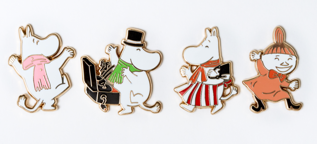 フィンランドの人気キャラクター・ムーミンの「ムーミン」「ムーミンパパ」「ムーミンママ」「リトルミイ」のピンバッジをチャリティー販売いたします。