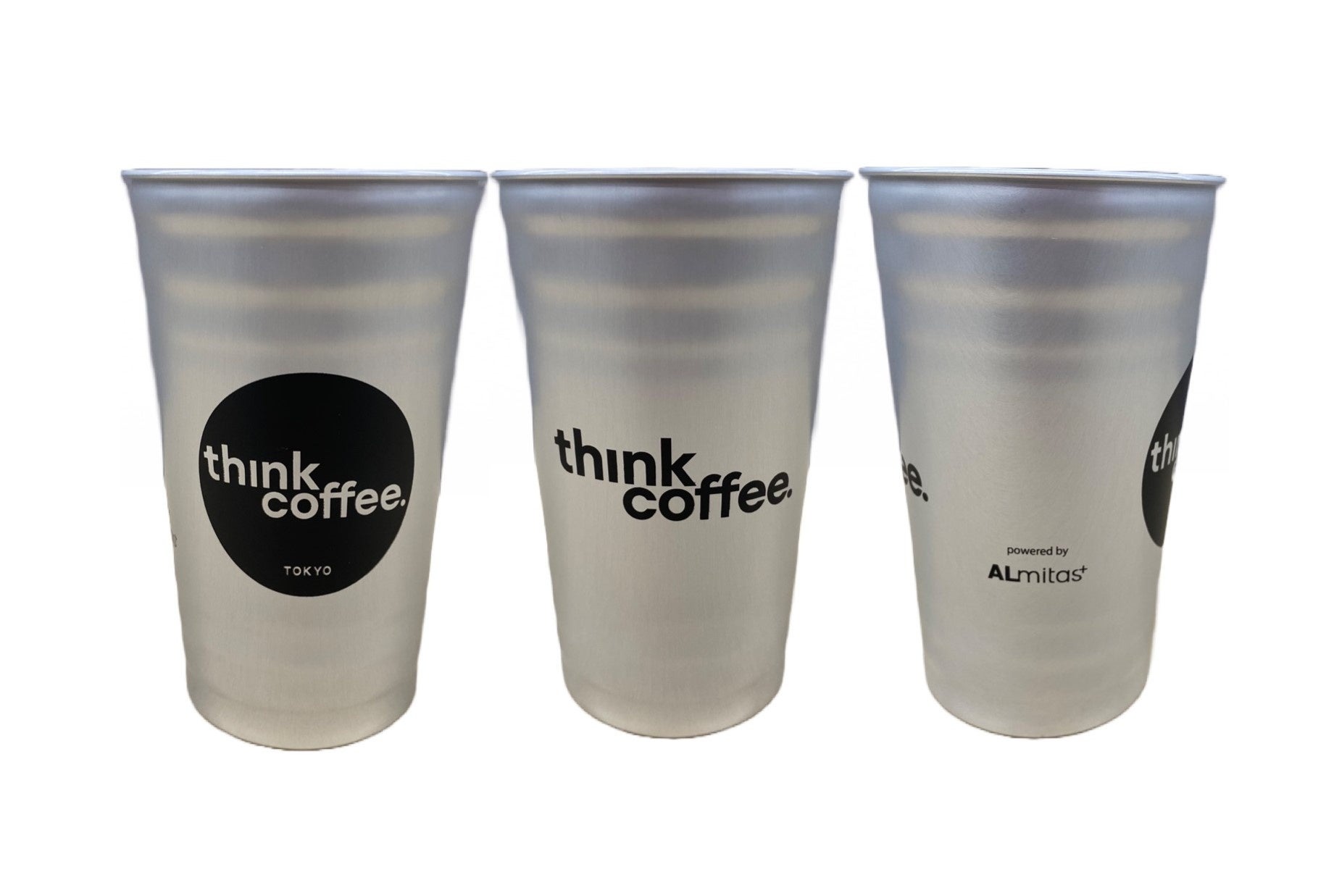 このたび、UACJとthink coffeeの目指す方向性が一致し、店舗での採用が決定しました。熱伝導性が高いというアルミニウムの特性を活かし、冷たい飲み物をより冷たく感じながら飲むことができるようアイスドリンク提供時などに使用する予定です。また、本アルミカップの素材はアルミ缶と同じ素材が使用されており、リサイクル性に優れていることから、両社での取り組みとして、使用後のカップを店舗で回収し、アルミ缶やアルミカップの材料に再生するサイクルを構築する計画も立てております。このようなアルミニウムの環境価値を皆さまにより知っていただけるよう、デザインとして、UACJの製品ブランド「ALmitas+」のロゴも併記しました。