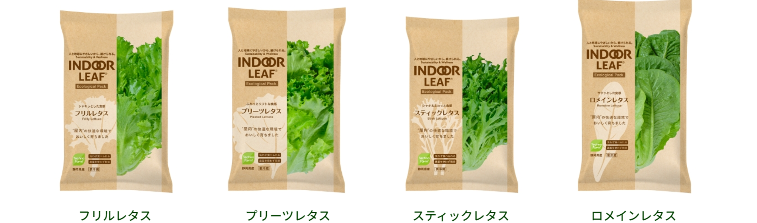 新工場の「テクノファーム袋井」では、200gの大型株『INDOOR LEAF』を生産します。野菜の価格高騰が頻発する今、より生活に取り入れやすくするために、従来の1株(80g)158円の店頭価格に対して、『INDOOR LEAF』は1株(200g)298円を実現。重量当たりの価格で約25%もお得な商品となりました。また、Techno Farm自動化生産システムのクリーンな栽培環境と徹底した衛生管理*1のもと生産しているため、洗わずに食べることが可能となりました。環境配慮包装「Ecological Pack」として、プラスチック使用量を約17%削減しました*2。
