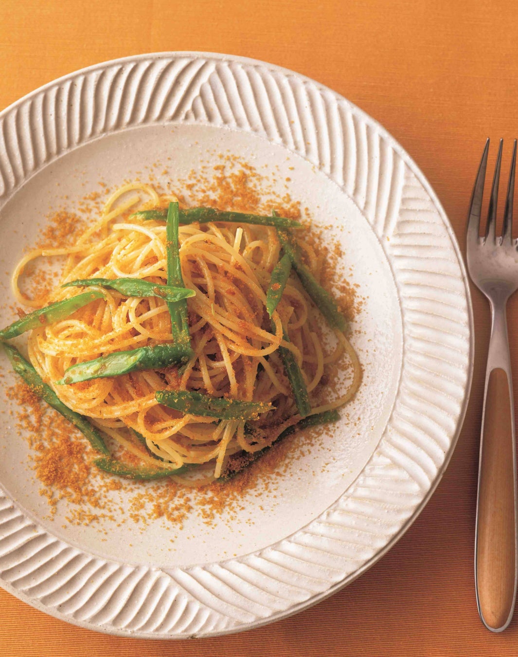 本書にレシピ掲載の「カラスミのパスタ」。イベント当日に提供予定のメニューです。
