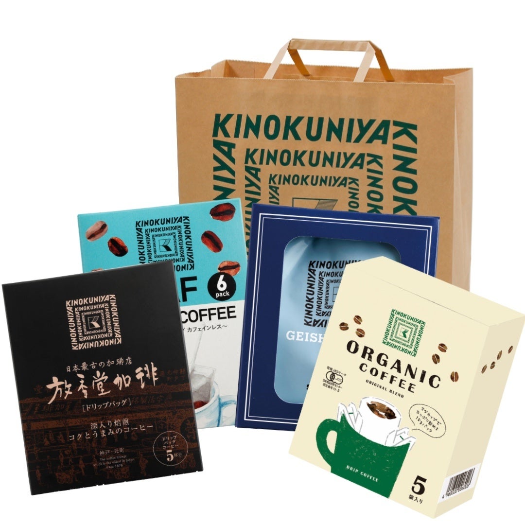 深煎り焙煎でコクのある味わいのコーヒーや、気品のある香りと豊かな甘味が特長のゲイシャ品種のドリパックコーヒーなど