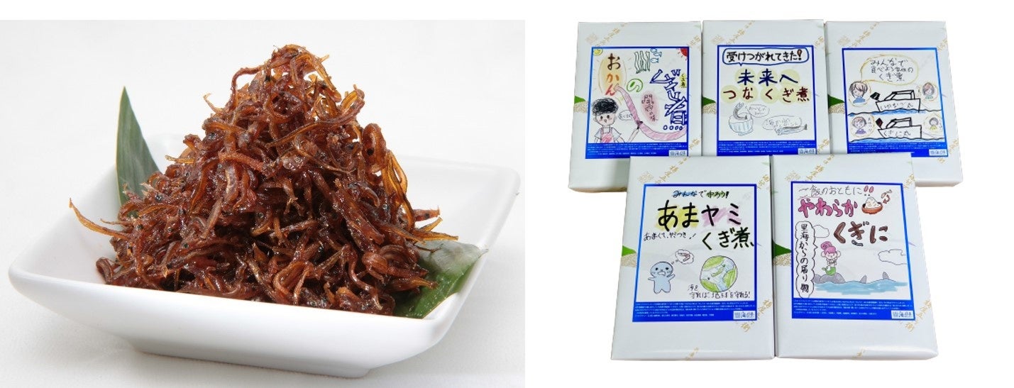 兵庫県を代表する魚種「いかなご」の漁獲量が近年減少していることを知った調査隊メンバーが、豊かな海や美しい運河と共に兵庫県の郷土料理「いかなごのくぎ煮」を未来につないでいくため、どのようなパッケージにすればより多くの方が海や運河の現状を知り、また郷土の味の大切さを感じていただけるかを考え、5つのデザインが完成。イベントでの学びやメッセージを発信していきます。11月25日から樽屋五兵衛本店、樽屋五兵衛 大丸神戸店をはじめとする5つの店舗と樽屋五兵衛のネットショップで販売されます。