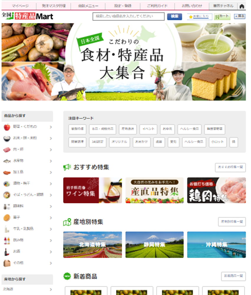 < リニューアルした「全国特産品Mart」のTOP画面 >