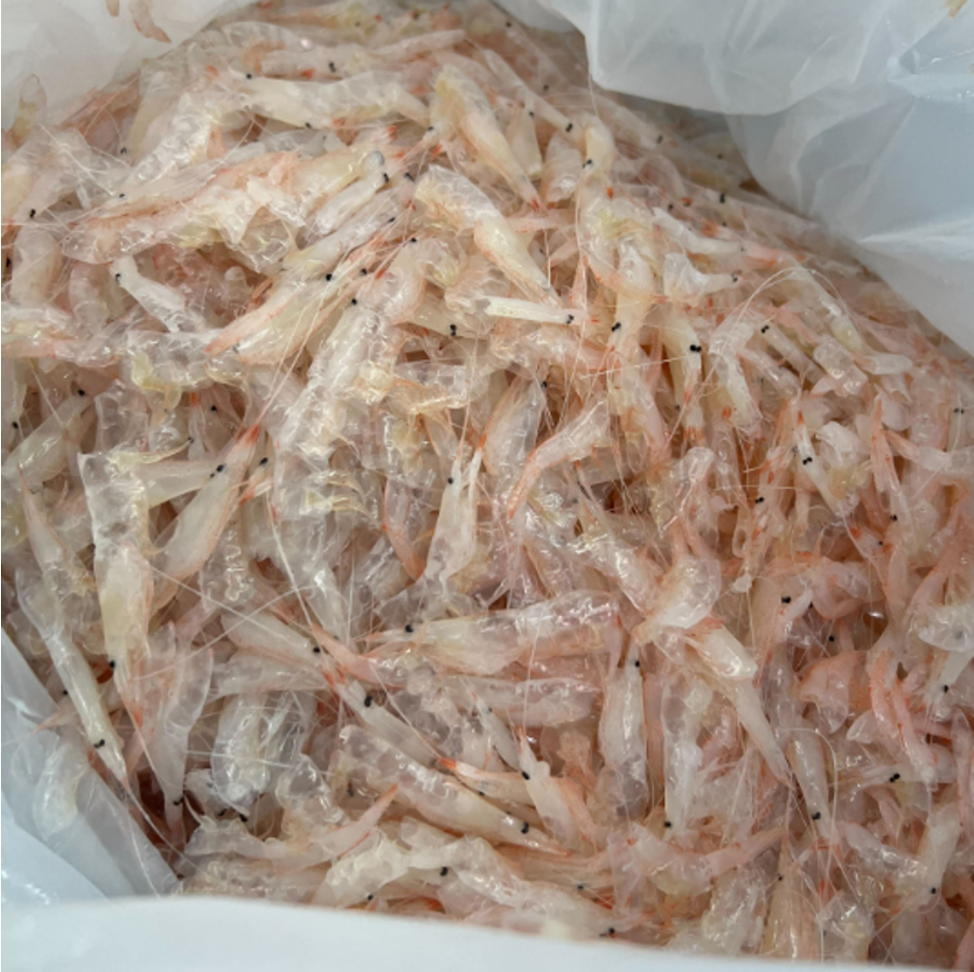 お刺身や鮨のネタとして提供されるため、殻を剥く作業は衛生面の行き届いた工場で行われており、鮮度を保つために素早い処理が必要になります。その工程で発生する、頭などの身が残った殻は、ピンク色で柔らかく旨味もあるにもかかわらず、そのほとんどが未活用でした。