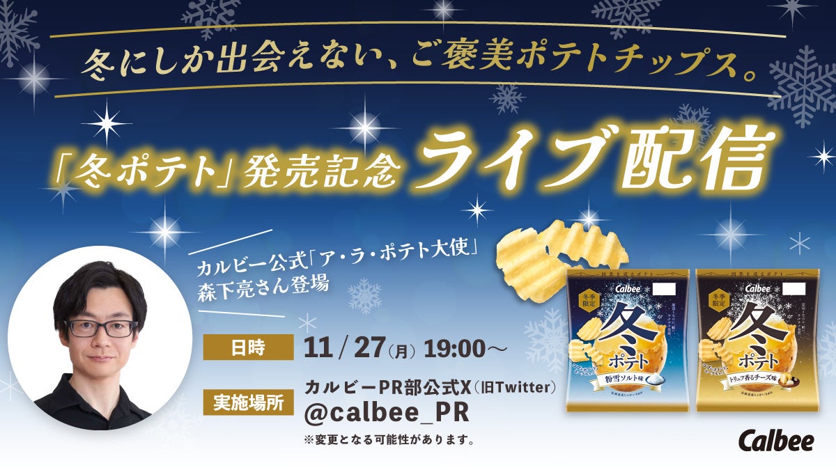 「冬ポテト」発売に合わせて、ライブ配信を実施します。俳優で「ア・ラ・ポテト大使」の森下亮さん、カルビー社員が出演し、今年の「冬ポテト」の魅力をお届けする予定です。