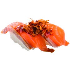ノルウェー産生サーモン 焦がしねぎラー油/2貫300円(税込)