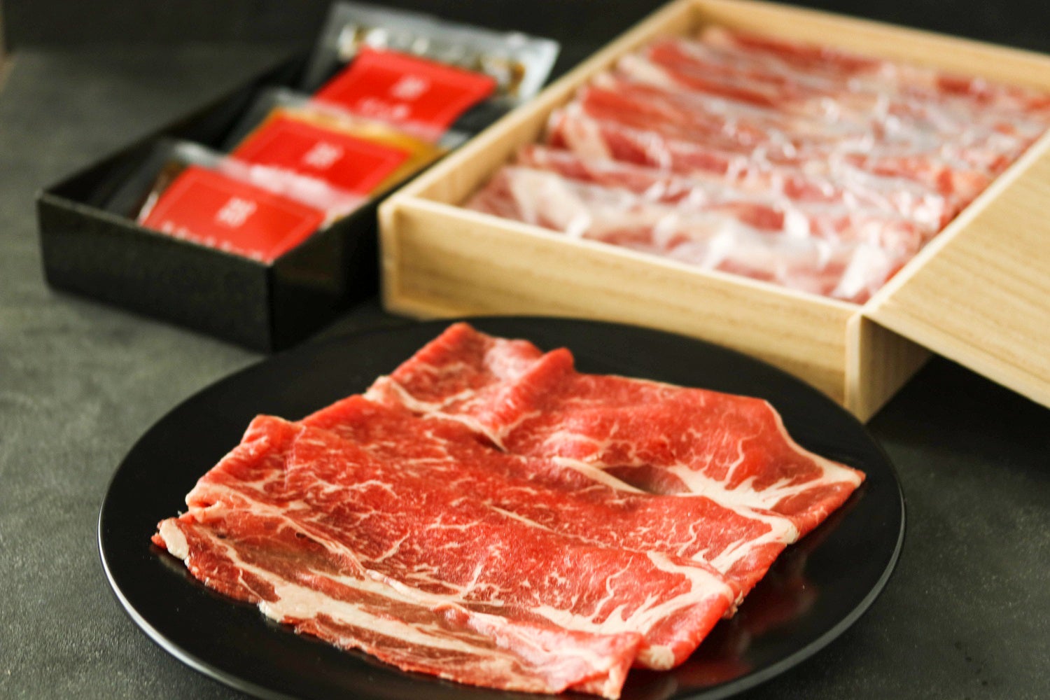 国内流通において最も希少な ”伝統和牛”である「いわて山形村 短角牛」を楽しめるセットです。しゃぶしゃぶ用のタレとスープ、すき焼きの割り下の両方を楽しめます。大晦日や年始の食事に最適な商品です。