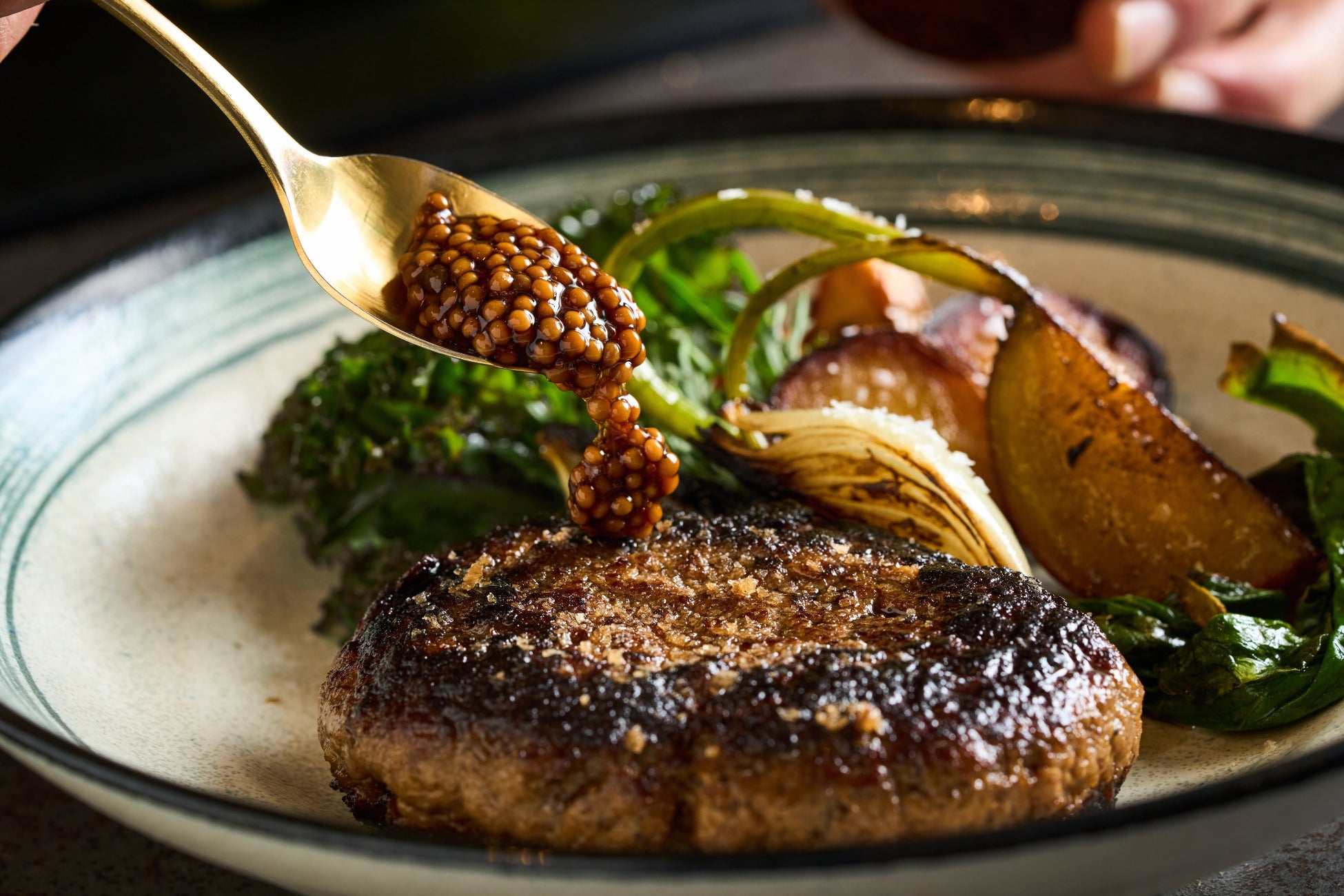 希少なプレミアム和牛「いわて山形村短角牛」と厳選精肉を使用したハンバーグです。強い旨味がありながら、ジューシーなハンバーグに仕上げています。