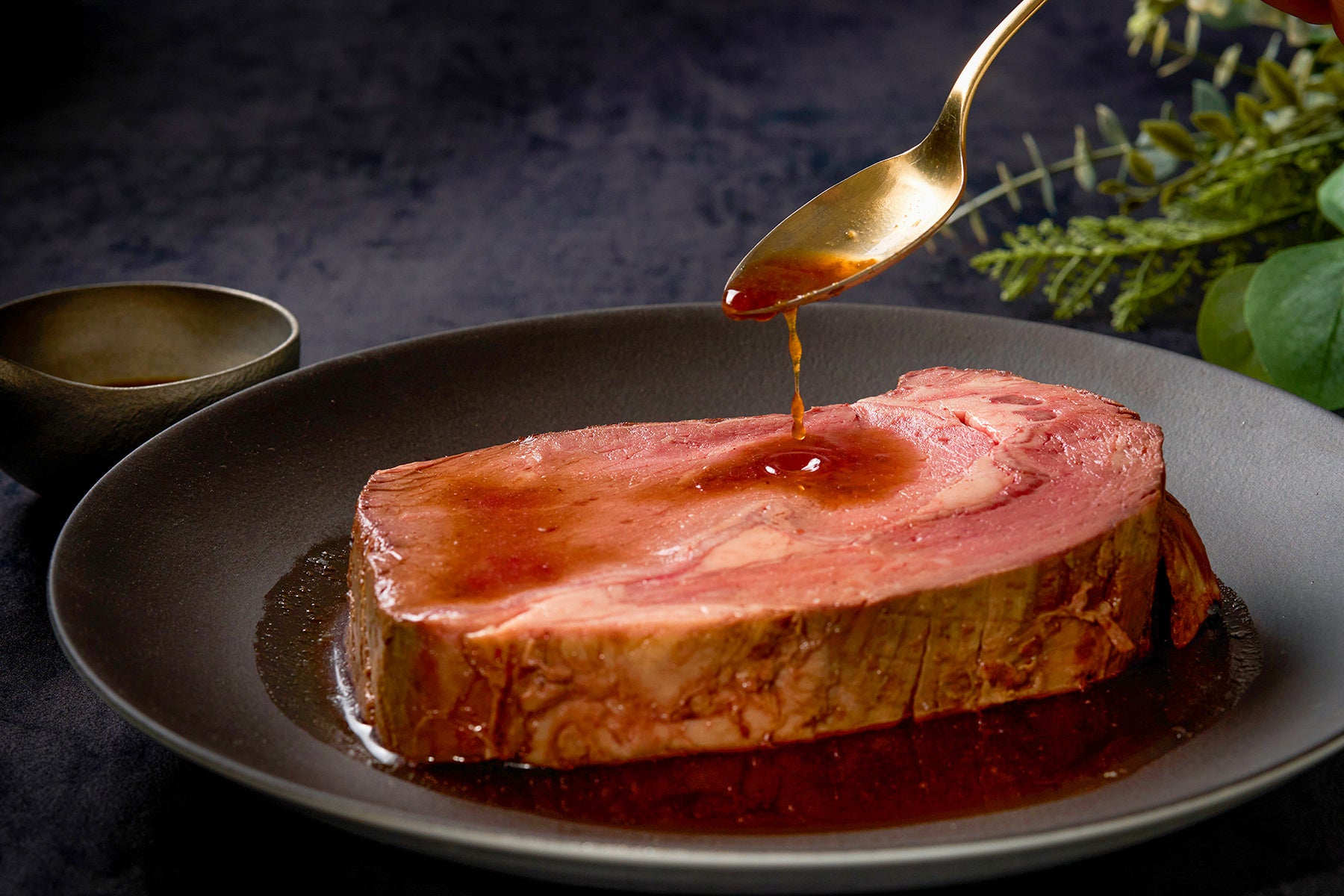 ロウリーズ・ザ・プライムリブのプライムリブは、低温でローストして旨みを凝縮させた逸品です。 するっとナイフが入るほどの驚きの柔らかさと、肉本来が持つしっかりとした繊維質やジューシーさを楽しめます。添えられた深い味わいのオ・ジュソースがお肉の味を引き立てます。