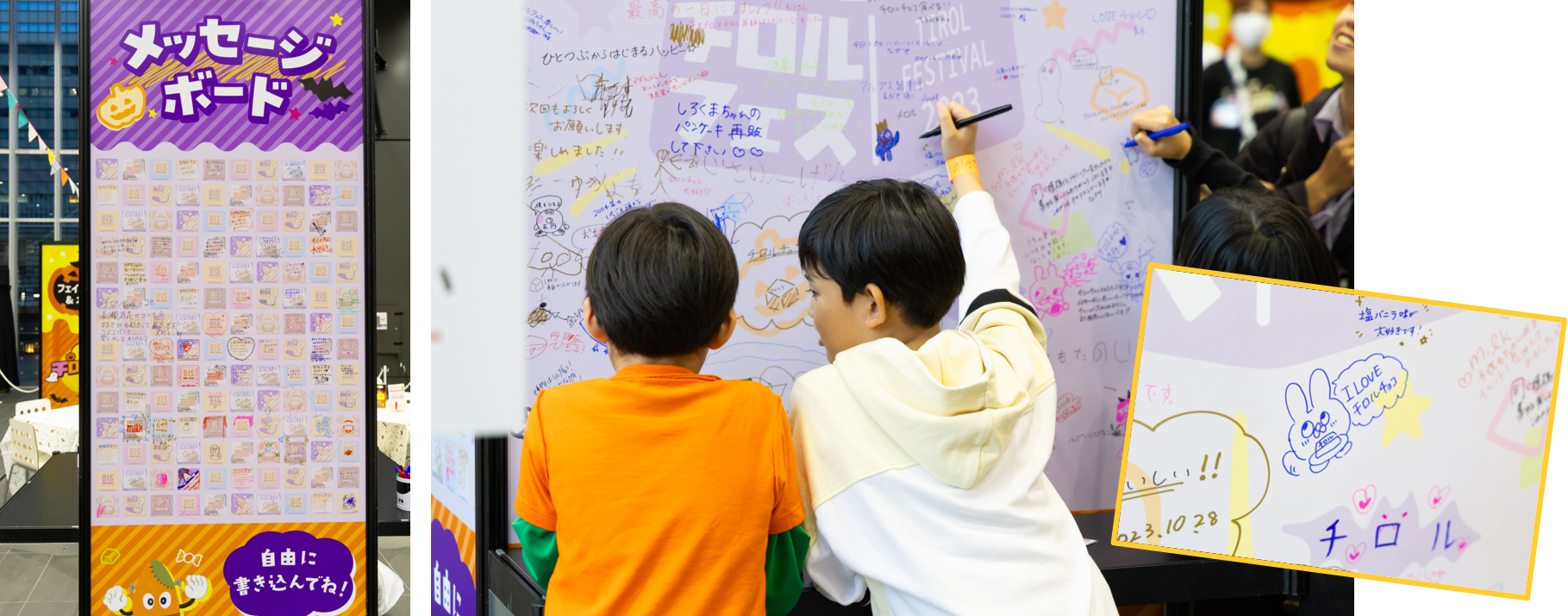 巨大なメッセージボードには、お客様からの嬉しいコメントや可愛いイラストがぎっしり♪