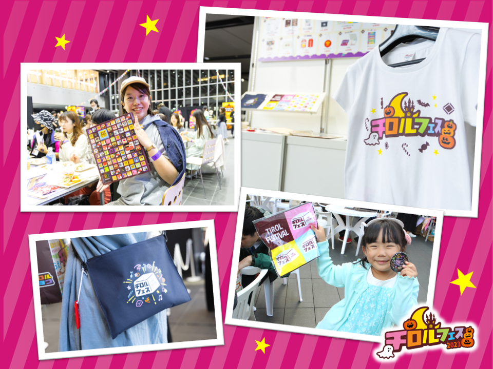 会場では、オリジナルのグッズを多数販売!チロルチョコの絵柄・キャラクターのマスキングテープやフレークシールが特に人気でした。ロゴ入りのTシャツ・サコッシュ等は会場でさっそく着用している方も♪