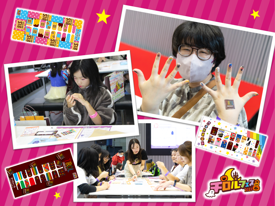 チロルのネイルシールを使って、ネイルチップを作成したり、自分の爪にシールを貼って楽しみました。
