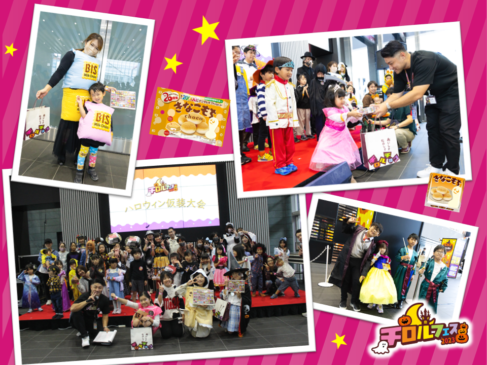 グランプリ・準グランプリにはチロルチョコの詰め合わせとジグソーパズルのセットをプレゼントしました。手作りの仮装で参加する方や、かわいいキッズ達も集まり大盛り上がりのコーナーとなりました。